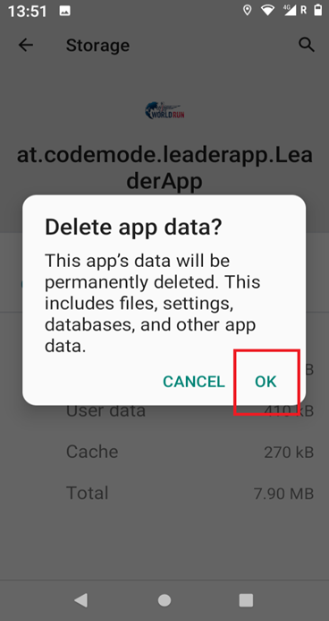 Press on “CLEAR STORAGE”