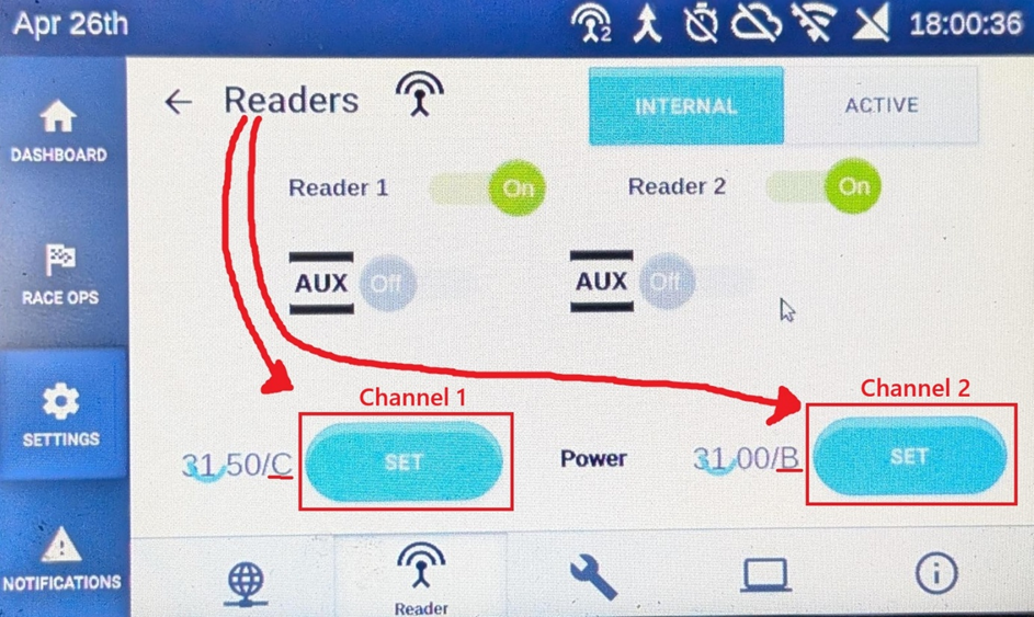 - There you can see what Channel the Readers have. Press “Set” to change them