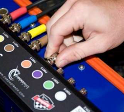 Connect the the antenna cables to the ChronoTrack Controller by matching the color on the cable to the port color on the controller. Don’t forget to plug in the ethernet cable in the RJ45 Port of the Pro2 Controller.