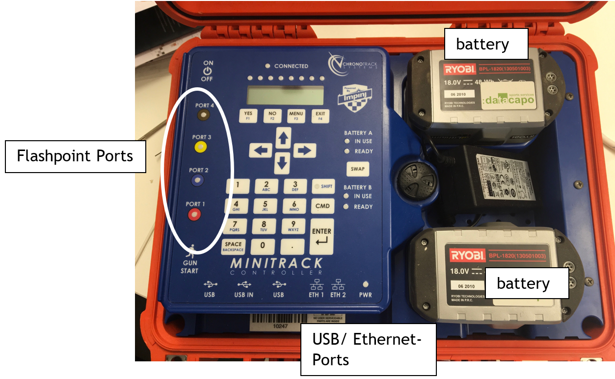 Chronotrack MiniTrack Controllers measure athletes with RFID-Technology via their Flashpoint antennas. They will be used for measurements in the Catcher Cars and at the KM 15 and 44 split lines.